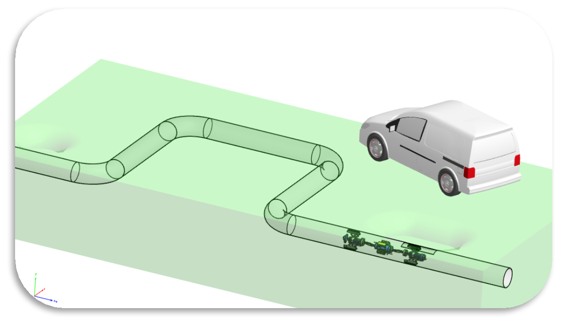 Вырез может быть выполнен в тепловой камере или при помощи шурфа. Диагностический комплекс, в том числе пульт управления, расположен в автолаборатории на базе автомобиля категории Б.