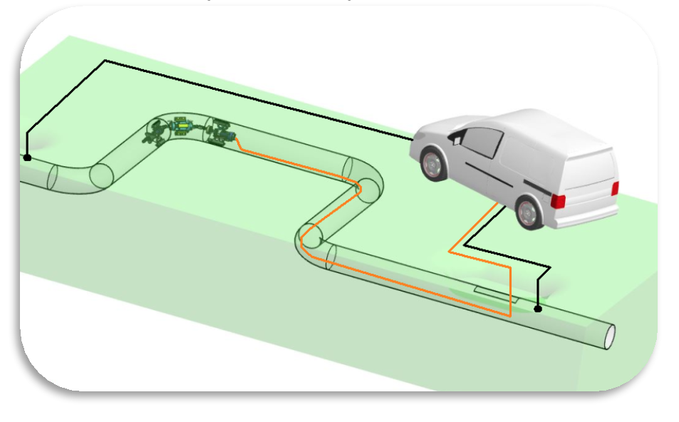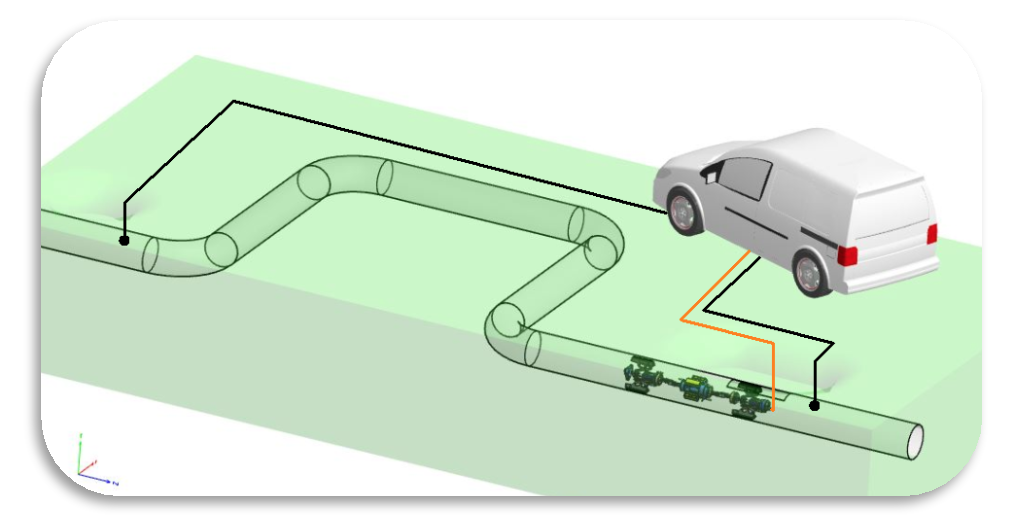 К концам диагностируемого участка трубы необходимо подключить электрические провода. По трубе пропускается электрический ток, это необходимо для возбуждения магнитных полей, распределение которых считывается датчиками на роботе внутри трубы.