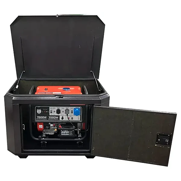 Кожух для генератора предоставляет легкий доступ к оборудованию со всех сторон, для этого предусмотрены два боковых люка и верхняя крышка, которая крепится петлями промышленного класса и удерживается в нужном положении газовыми амортизаторами. Обе дверцы и крышка защищены замками.
