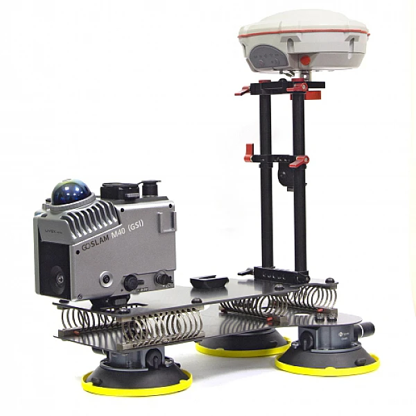 Благодаря специально разработанному креплению сканера GoSLAM серии Т и М40 на автомобиль, сканирование возможно выполнять в движении на скорости до 30 км/ч. А с помощью спутникового приемника SinoGNSS привязка данных сканирования осуществляется в режиме реального времени в RTK.