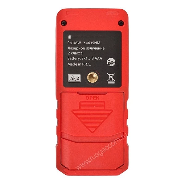 Питание лазерного дальномера RGK DL70 осуществляется от трех батареек типа ААА или аккумуляторов аналогичного формата. Одного комплекта батарей хватает для 8000 измерений. Для экономии заряда лазер и подсветка экрана автоматически отключаются через 20 секунд, а сам прибор - через 2,5 минуты.