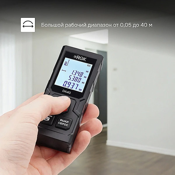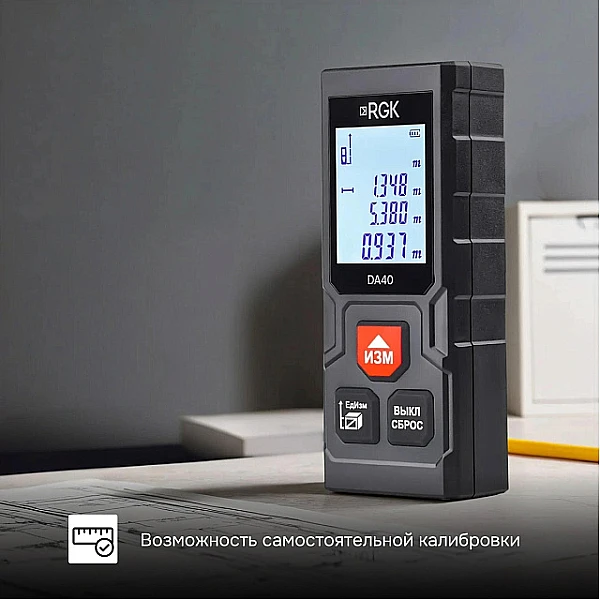 Лазерный дальномер RGK DA40 - компактный прибор, который легко помещается в карман, и при этом дает строителям и замерщикам весь функционал, необходимый в повседневной работе.