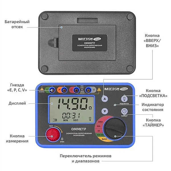 Купить Омметр (измеритель сопротивления заземления) МЕГЕОН 13020 в Краснодаре легко — просто позвоните по телефону: 8-800-551-11-01