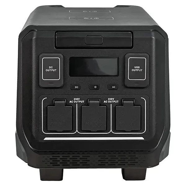 Портативная зарядная станция оснащена двумя USB-портами, одним USB-C портом, двумя DC-выходами и тремя AC-выходами. Это позволяет подключать и заряжать несколько устройств одновременно, что особенно удобно в условиях активного отдыха, где доступ к электричеству ограничен.
