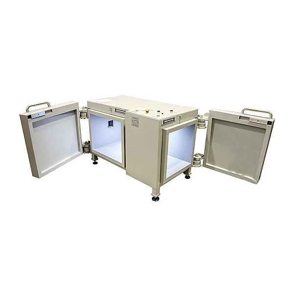 Конструкция камеры выполнена из стали и свинца, имеет две распашные двери для загрузки различных моделей рентгеновских аппаратов. Дополнительная радиационная защита не требуется. Для оперативного ввода кабеля питания и управления рентгеновским аппаратом предусмотрен специальный откатной рентгенозащитный кабельный ввод.