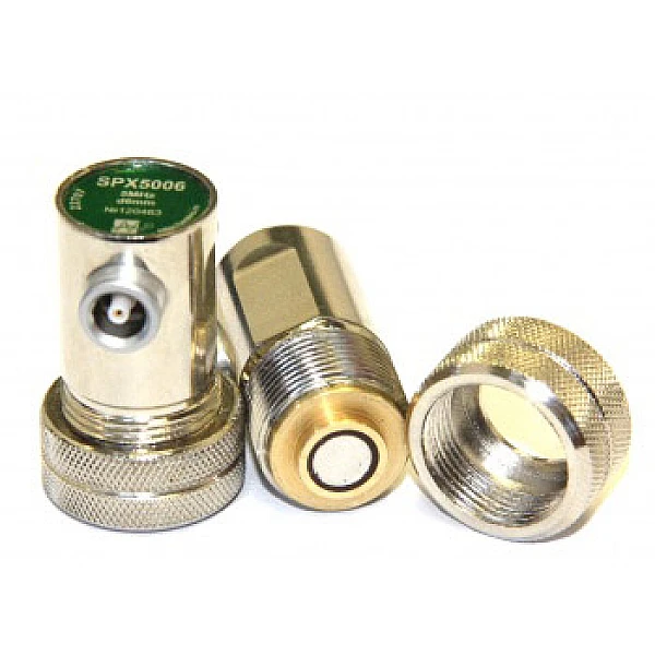 Преобразователь прямой совмещенный со сменными полиуретановыми протекторами. Предназначен для контроля изделий с грубой поверхностью.