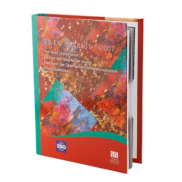 Шведский стандарт (ISO 8501-1, SIS 055900). Оригинальные визуальные образцы показывают степень чистоты четырех различных уровней заржавленной стали, очищенной струйным методом при помощи ручного или механизированного инструмента или огня.
