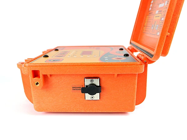 В составе комплекта приемник в виде моноблока с большим ЖК дисплеем, на который выводится изображение трассы и в автоматическом режиме происходит расчет глубины залегания коммуникации до 10 м, а также величины тока в линии.