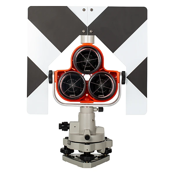 Призменная система RGK HD34 имеет три отражателя и черно-белую марку. Это позволяет осуществлять измерения тахеометрами и дальномерами на дальние дистанции. Наличие регулируемой подставки обеспечивает высокую точность центрирования.