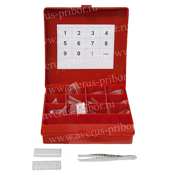• Пеналы − 5 шт. Каждый пенал имеет 6 ячеек, в которые можно поместить в определенной последовательности до 6 знаков. Пенал с набранным цифровым обозначением контролируемого изделия или отдельного участка устанавливается в карман кассеты или непосредственно на изделие.